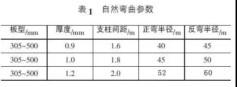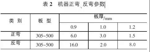 彎弧板機(jī)器正彎、反彎參數(shù),見表2。